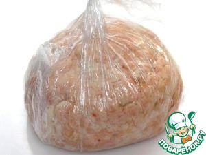 Готовое тесто кладем в пакет и помещаем в холодильник на 1 час, можно в морозильник на 30 минут.