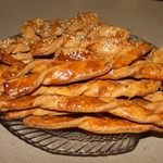 Укладываем полоски на противень, опять немного присыпаем тмином и помещаем в разогретую духовку. Запекаем полосочки при температуре 180 градусов 40 минут. И не забываем про вторую часть теста в холодильнике.