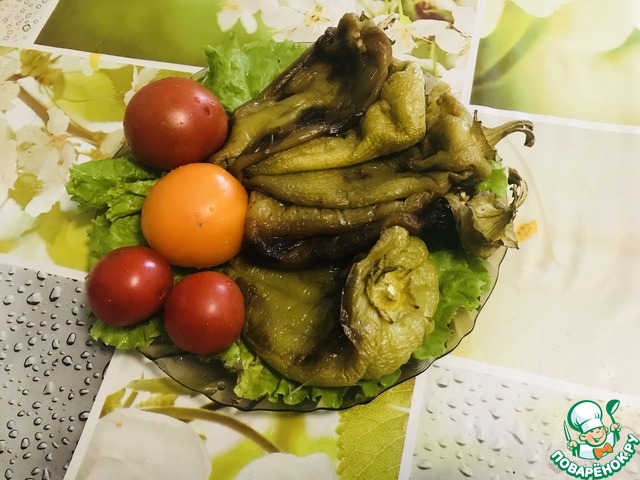 А к ужину закуска уже готова. Очень похожа на закатку на зиму. Перед подачей я перцы чищу от шкурки. А подаю с хвостиками.