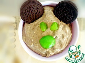 Из оставшихся печенек делаем ушки, а из цукатов мордочку. Радуем детей и взрослых вкусным сорбетом!