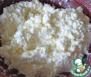 • Теперь приготовим начинки. Творог смешиваем с сахаром и сметаной. Начинка №1 готова.