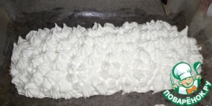 • Белки взбиваем в крепкую пену, затем по чуть чуть начинаем добавлять лимонный сок, затем добавляем сахар. И взбиваем 3-5 минут до загустения.