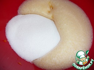 Яйца взбить в крепкую пену.