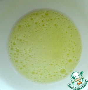 1. В небольшой емкости слегка взбить яичный белок, чтобы образовалась пена с пузырьками разного размера.