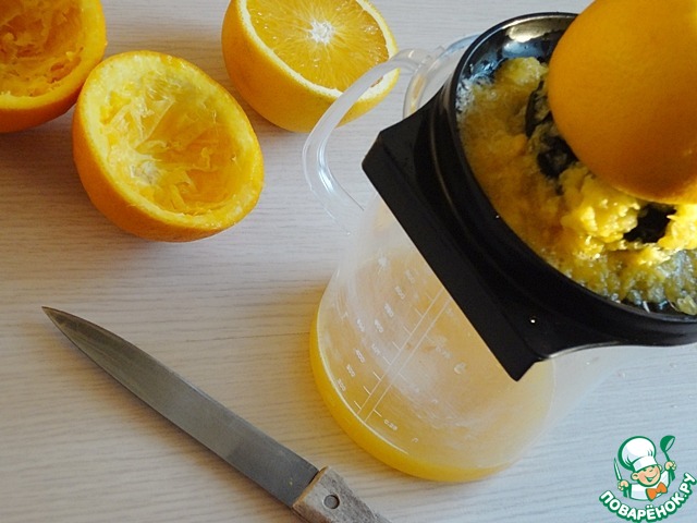 Апельсины берем охлажденные. Отжимаем сок. -