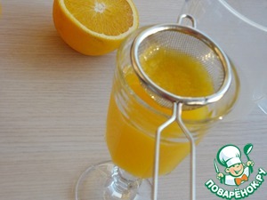 - Сок апельсиновый (сок примерно 1,5 апельсинов, свежевыжатый) — 150 мл