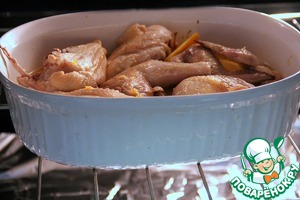 Затем вынимаем из духовки, переворачиваем курицу на другую сторону и отправляем обратно в духовку еще на 15 минут. -