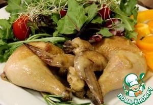 Кажется ну вот что можно нового приготовить из курицы? Уже столько много рецептов, которые мы все знаем и пробовали. И вот мне попался на глаза новый рецепт, который поразил меня простотой и обилием вкуса и аромата. Курочка получилась очень нежной, ароматной, просто тает во рту!!! Под это настроение я устроила мужу романтический ужин и мы наслаждались нашим любимым вином, вкусным ужином и общением друг с другом!))) Угощайтесь и вы!!!