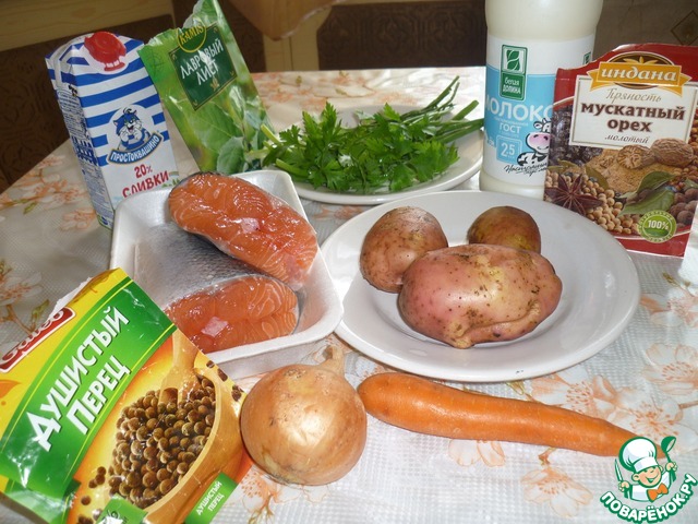Ингредиенты для «Сливочный форелевый суп»: