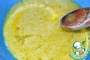 Небольшими порциями вливаем молоко, постоянно размешивая тесто. Тесто должно получится как на блины.