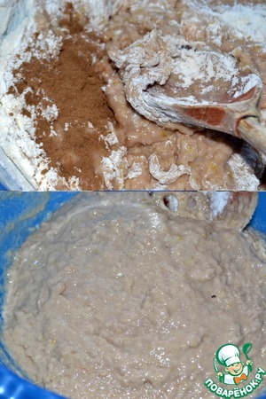 Добавить частями просеянную муку и корицу. Замесить вот такое тесто.