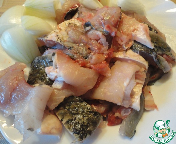 Рыбу чистим, потрошим, обрезаем плавники и хвост. Надрезаем кожу возле хребта и удаляем его. Также удаляем реберные кости. Полученное филе - на кусочки, подходящие для мясорубки.