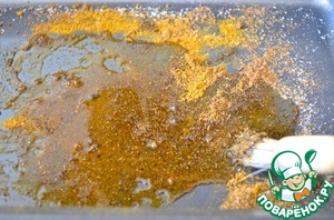 1. Всыпать специи в противень и влить масло. Смешать специи с маслом кисточкой.