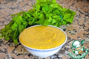 Должен получиться жёлтый ароматный соус с зелёными вкраплениями мяты.