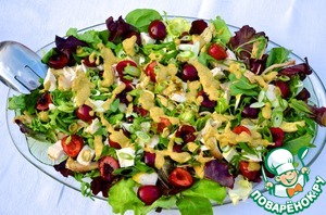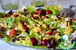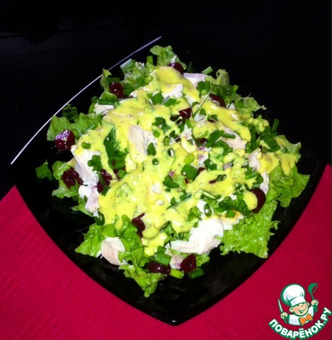 Рецепт «Салат из курицы с черешней и соусом кари»: