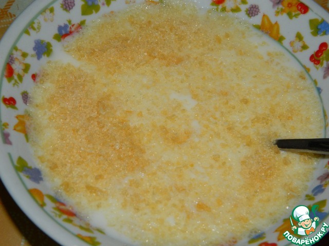 В молоко добавить желатин, оставить для набухания на 10-15 минут, затем подогреть на слабом огне, чтоб желатин растворился полностью, не забываем помешивать.