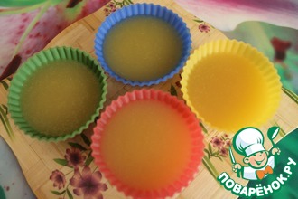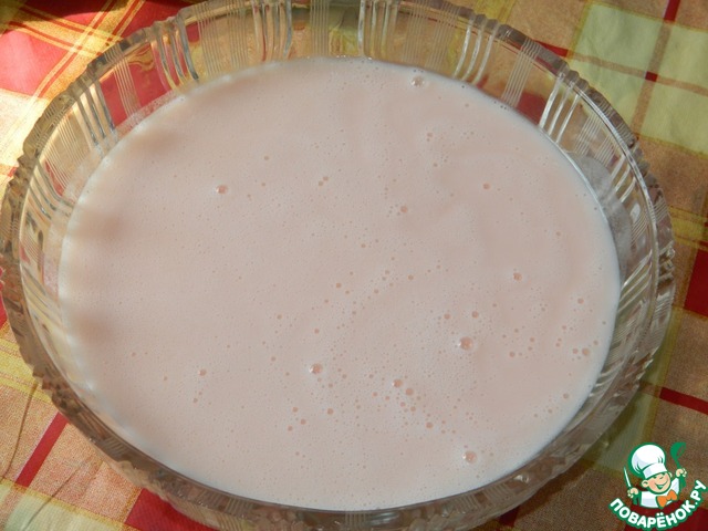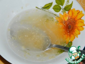 • Желатин залить водой и оставить минут на 15-20. Затем нагреть немного, чтобы он растворился.