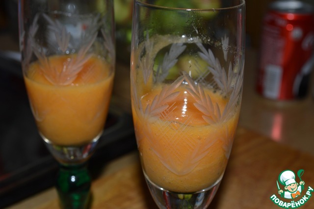 Охлажденный высокий бокал для шампанского наполнить наполовину пюре.