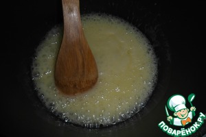 3. Добавляю сахар, сметану и, помешивая, жду пока не пойдут пузырьки.