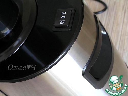 Кстати, на корпусе со стороны кнопок имеется углубление для безопасного переноса соковыжималки. Даже если у Вас мокрые руки, она точно не соскользнет. Очень удобно
