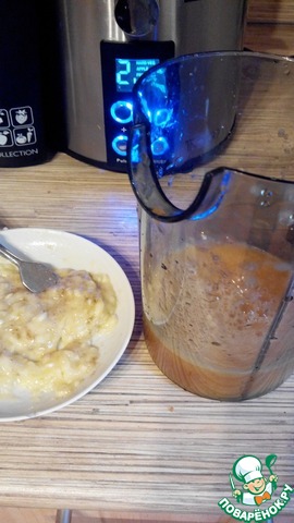 • Выжимать сок из банана - дело неблагодарное! Поэтому я просто размяла его хорошенько и смешала с корицей и измельченным миндалем.