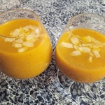 Я почему то зациклилась на молочных коктейлях, а ведь зимой можно такие витаминные напитки взбивать, что мама не горюй!)) Иногда по акции очень дёшево продают мандарины и апельсины. Я тогда покупаю сразу 5 кг, отжимаю сок (ну, ненавижу я возиться с соковыжималкой!) и замораживаю сок в 0,5 л бутылочках. В этот раз сок как раз из заготовок. Очень приятный напиток. Обошлась зимой без льда, и миндальные хлопья не стала перемалывать, они не мешают пить сок, если лежат сверху. Большое спасибо за рецепт. Вкусно!
