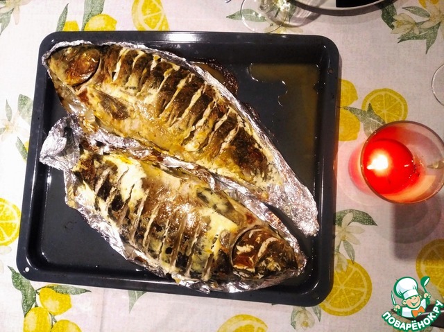 Заворачиваем карпа в фольгу и запекаем при температуре 200 -220 градусов примерно 40 минут.