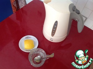 Вскипятим 160 г воды, зальем ею 100 г сахара и добавим сок лимона. Размешаем, чтобы сахар растворился и отставим на полчаса.