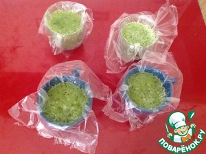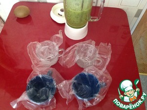 Чашечки или любые формочки изнутри выложим пищевой пленкой, чтобы сорбет легко можно было из них достать.