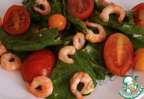 Ингредиенты для «Салат из шпината, креветок и черри»: