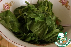 Добавить туда шпинат, крупно порезанный, перемешать.