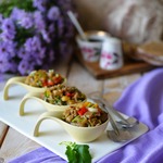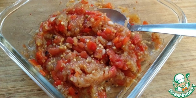 Смешивать овощи следует, когда перцы и баклажаны еще теплые, вкус получается совсем другим, чем когда они полностью остыли. -