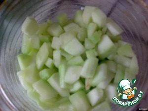 Кабачок почистить от кожуры и семечек, порезать на кусочки.