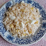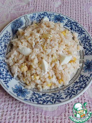 Рис смешать с порезанным яйцом.