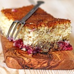 [+5]Использовала размороженную вишню, немного побольше , чем в рецепте. В тесто - миндаль молотый, а в качестве кроканта - фундук. Исходя из имеющихся запасов, пекла половину нормы, в форме, немного превышающей по размерам ( в процентном отношении, конечно) рекомендованную в рецепте. Пирог получился высотой прим 1,5 см. Сочетание вишни, хрустящих сладких орешков... Это так вкусно!