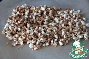 Орехи распределить в один слой на силиконовый коврик или бумагу для выпечки, для полного остывания