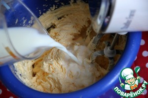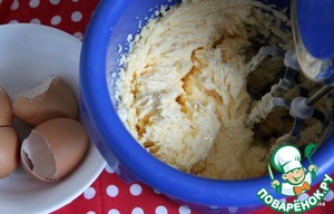 Ввести по одному яйца. После каждого яйца взбивать тесто по 2 мин.