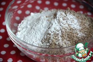 В отдельной миске смешать муку, разрыхлитель теста и молотые орехи