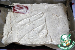 Противень или разъемные бортики 32 х 42 см выстелить бумагой для выпечки, распределить тесто