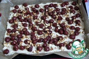 Выложить сверху подготовленную вишню и 1/3 орехового кроканта.