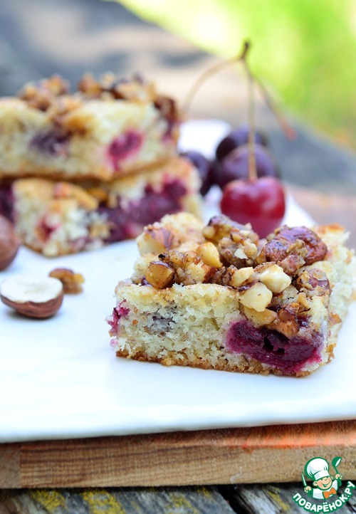Рецепт «Миндально-вишнёвый кекс с ореховым крокантом»: