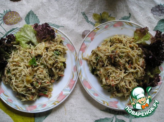 • В кипящей подсоленой воде со специями (я брала "Для лапши") отвариваем вермишель.