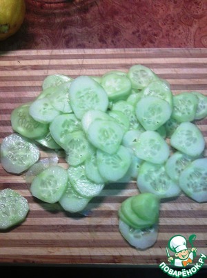 Огурец вымыть, тщательно очистить и нарезать тонкими кружочками.