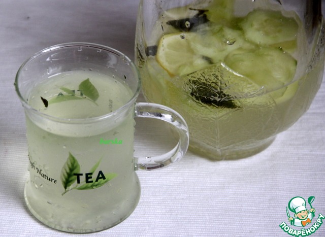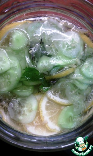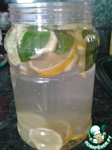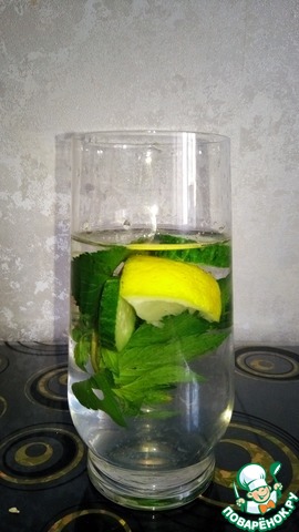 Все ингредиенты укладываем в емкость (листья мяты предварительно надрываем руками), заливаем водой. Готовить напиток рекомендуется вечером, на ночь (на 10-12 часов) емкость ставят на нижнюю полку холодильника. В течение следующего дня выпиваем всю воду.