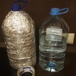 [+5]Обматываем бутылку в пару слоев фольгой, потом плотно скотчем обматываем всю фольгу, чтобы не рвалась.