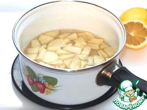 Добавьте в сироп : 3-4 ст. л. лимонного сока, 1 ст. л. вина, и оставьте варить яблоки на медленном огне, ~ 5 мин.