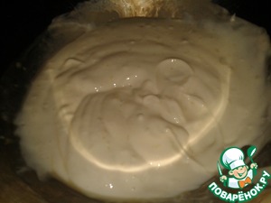 Сливки взбить в густую пену и об'единить с йогуртовой смесью.