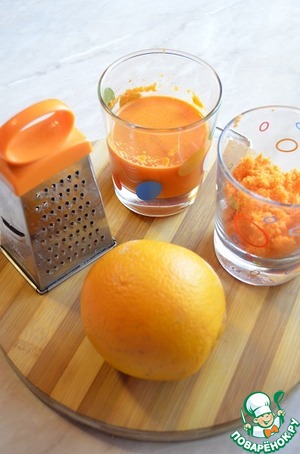 С половинки апельсина снять цедру. Жмых морковный не выкидывем, перекладываем в чашечку.