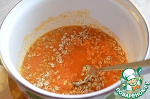 Добавить в полученный сок геркулесовые хлопья, дать постоять около 10 минут.