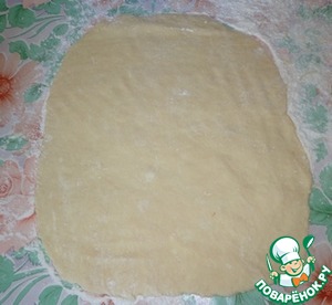 Достаем тесто, раскатываем в пласт (0,5 см).